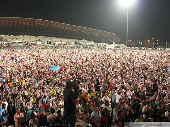 EVEN a steady drizzle early in the evening of 15 Sept 2008 failed to dampen the spirits of thousands of Malaysians who thronged the MBPJ Stadium in Kelana Jaya for the Malaysia Day rally organised by Parti Keadilan Rakyat (PKR).