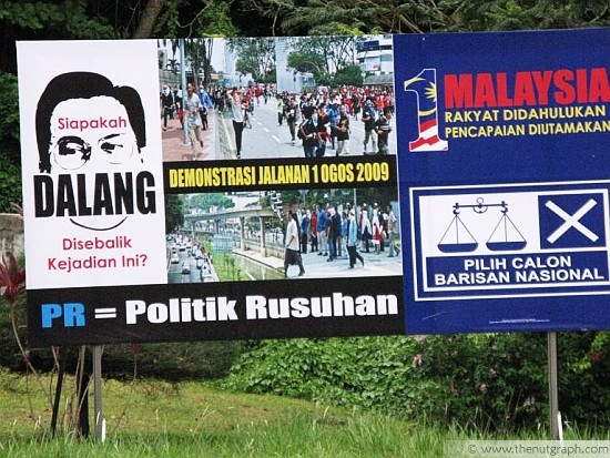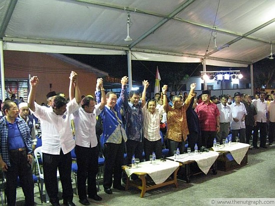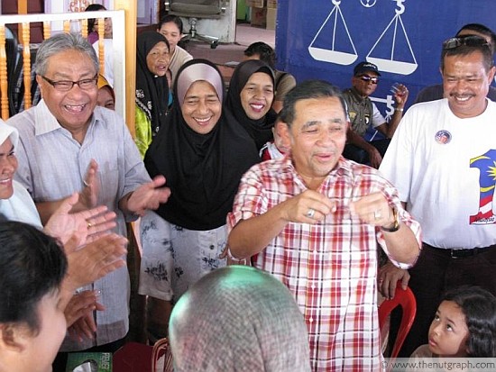 This is largely due to the advantage of incumbency — this seat fell vacant because of the death of BN assemblyperson Azman Mohammad Noor. It is probably also due to BN candidate Tan Sri Isa Samad‘s charisma and influence as a former menteri besar and seasoned politician. So far, Isa has demonstrated a readiness to piggyback on government functions to spread his campaign message — and BN ministers have been happy to let him.