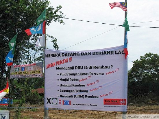 FROM day one, the Barisan Nasional (BN) has been pulling out all the stops in its Bagan Pinang by-election campaign. Sure, the Pakatan Rakyat (PR) managed to muster more than 4,000 supporters — more than double the BN’s — on nomination day. But since nominations closed, it is clear that the PR is struggling to catch up with the BN, in terms of outreach and conducted activities.