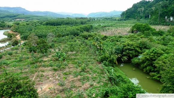 From the cave entrance, one can see the rubber smallholdings that dominate the Kampung Pulai landscape. November 6, 2010