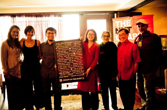 The book cover is revealed. (From left) Yasmin, Asha, ZI Publications’s Ezra Zaid, Surin, D’Cruz, Teoh and Mano. September 18, 2011