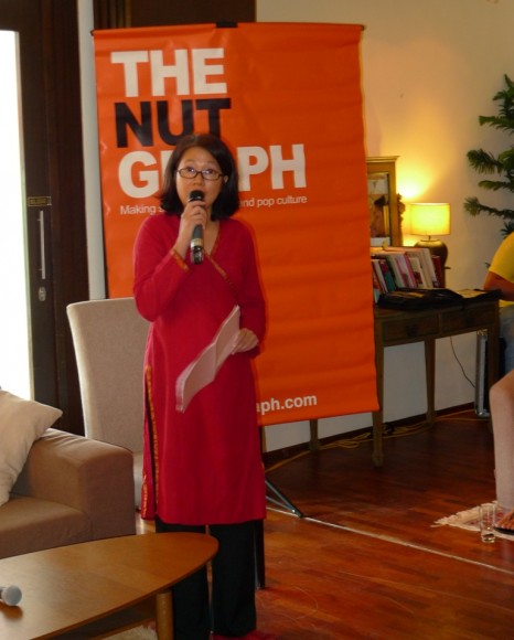 The Nut Graph editor and co-founder Jacqueline Ann Surin explaining to the audience that the Found in Malaysia series was a response to Umno politician Datuk Ahmad Ismail’s infamous remark that non-Malays are “pendatang”. September 18, 2011