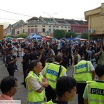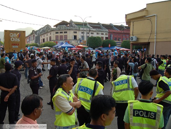 The morning started out calmly as supporters on both sides gathered at their respective meeting points. The BN’s supporters gathered at a mosque about 1km from the nomination centre, and the PR’s near shops on the fringe of the Kuala Kubu Baru town centre.