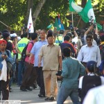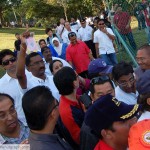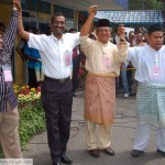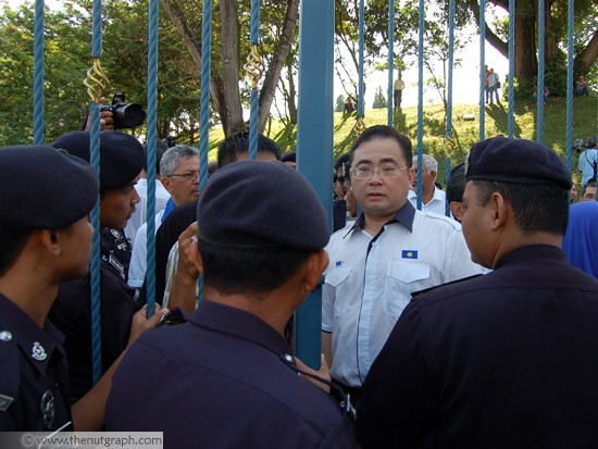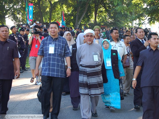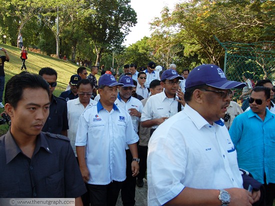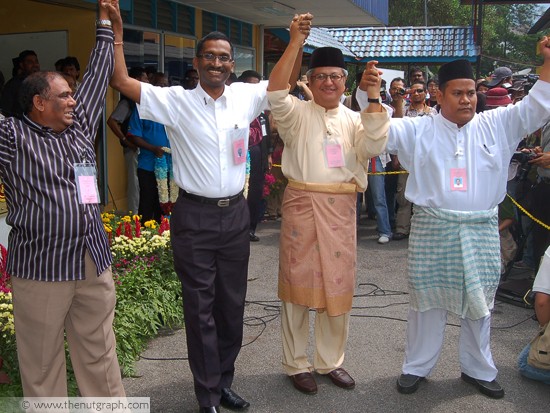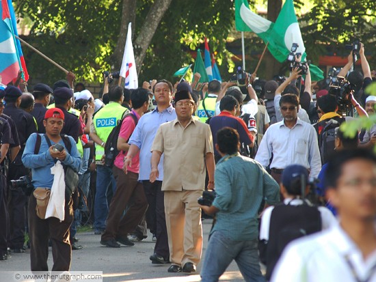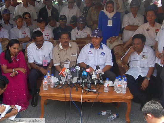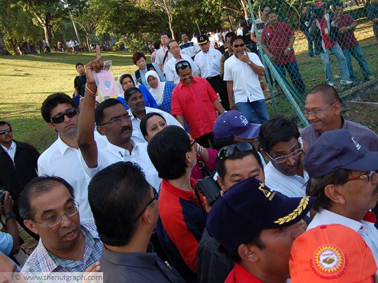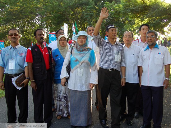 Of all the candidates, Zaid arrived at the centre the earliest, and filed his papers at 9:06am. Kamalanathan arrived later with a big entourage of BN leaders, several of whom blamed their contingent’s delay on entanglements with the barbed wire police had laid along roads leading to the centre. Samy Vellu was reportedly among those who fell and cut himself on the barbed wire.