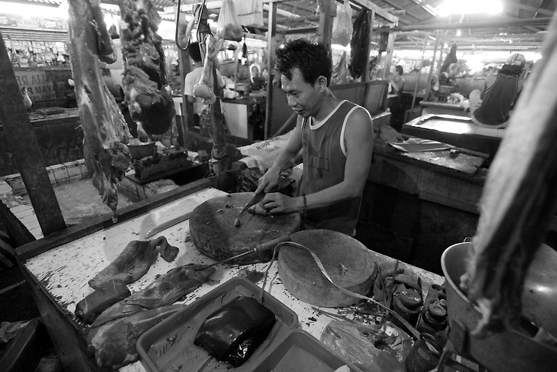 In this collection of photographs, we see a side of Asia that is still in touch with its meat. The protagonists in these pictures are just providing for their families. For a city dweller, these pictures might likely be dubbed “gross” or “graphic”. For me, they are real. Modern factory meat production happens behind closed doors. In these photographs, the doors are wide open.