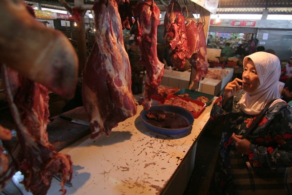 In a small market in a Jakarta suburb in Indonesia, a woman scrutinises pieces of beef. Parts of the cow have been left intact — in the forefront, the hoof is still on. November 27, 2010