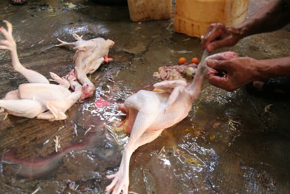 The whole process from death to sale can take less than five minutes in the chicken slaughterhouse in Chinatown, Jakarta. November 27, 2010
