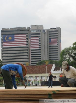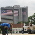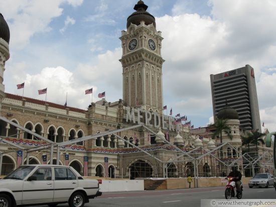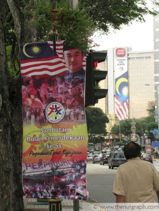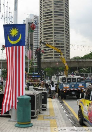 Whatever the case, with National Day on 31 Aug 2008 just round the corner, the city and its surroundings are festooned with flags of all sizes, hanging from the sides of many of the city’s landmark buildings. Rehearsals for the 51st Merdeka celebrations at Dataran Merdeka are also in full swing, but the fever hasn’t yet spread to the city folk who go about their daily business with nary a glance at the Jalur Gemilang displayed around them. ![]()