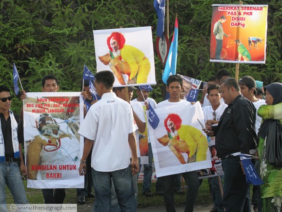 From the pics, I guess the law applies the Malaysian way. That is so long as you are not aligned to the ruling coalition.