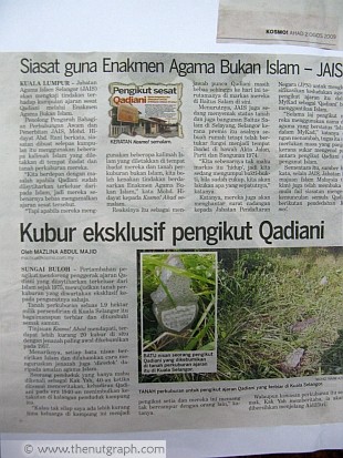 IN April 2009, the Selangor Islamic Affairs Council (MAIS) officially forbade the Ahmadiyah community in the state from performing their own Friday prayers. This news, however, did not make headlines — after all, there are at most only 2,000 Ahmadiyah in all of Malaysia, and at most only 600 in the Klang Valley. But from the panic-inducing headlines in the Malay-language press, one would think that the Ahmadiyah were an insidious fanatical sect bent on destroying the faith of Sunni Muslims in Malaysia.