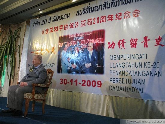 The only prominent Malaysian present at the ceremony was Datuk Yau Kong Yew, the former Special Branch deputy director who was a member of the Malaysian team in the peace negotiations.