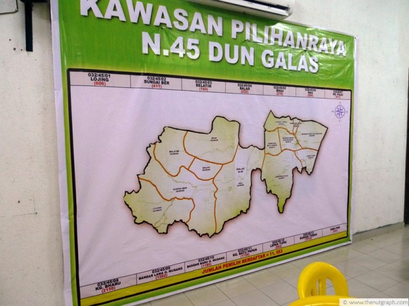 A map of polling districts in the Galas state seat, which is bigger than Malacca.