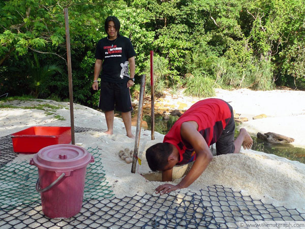 Filed Under: Pictures Tagged With: Chagar Hutang, Chan Eng Heng, conservation, Dr Juanita Joseph, environment, Gan Pei Ling, green turtles, hatchlings, hawksbill turtles, Liew Hock Chark, marine biologists, nests, Redang Island, turtles, Universiti Malaysia Terengganu, volunteers