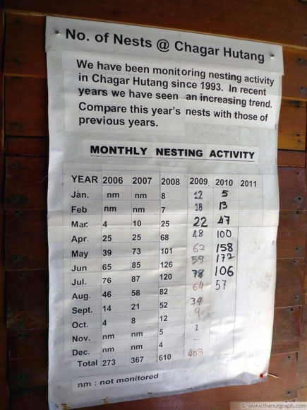 Total number of turtle nestings in Chagar Hutang since 1993. (Source: Volunteer Programme Handbook) October 2, 2010