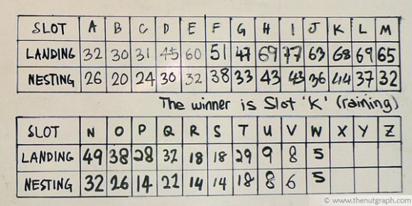 Volunteers from the week of 29 May to 5 June (slot I) counted the highest number of turtle landings this year – 77 or an average of 11 landings per night. But those from the week of 12 to 19 June (slot K) saw the most number of turtle nestings. October 2, 2010