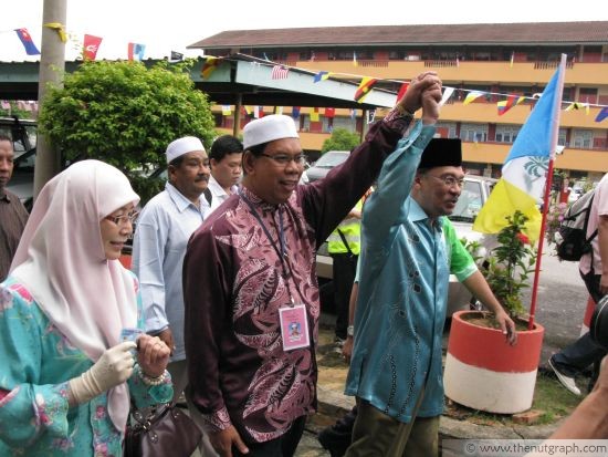 Rohaizat, too, made his rounds at polling stations with his wife Khairul Nisa Abdul Razak in tow. The BN candidate has been on the defence throughout his campaign from attacks about his disbarment from legal practice, and allegations that he married a second wife secretly. He has denied the allegations about a second wife, and has tried to downplay his disbarment by blaming his former legal firm partner.