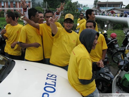Other BN and Pakatan Rakyat leaders were also moving around the constituency checking on the mood. Polling was relatively smooth, save for a few minor clashes between rival supporters. A few groups were also seen arguing with police, who were enforcing the rule banning the display of party logos near polling centres.