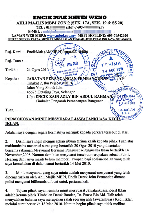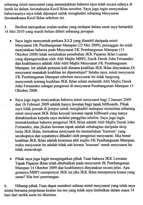 Alas, tired of the wait, I formally requested for the meeting minutes at the MBPJ full board meeting in July 2010.