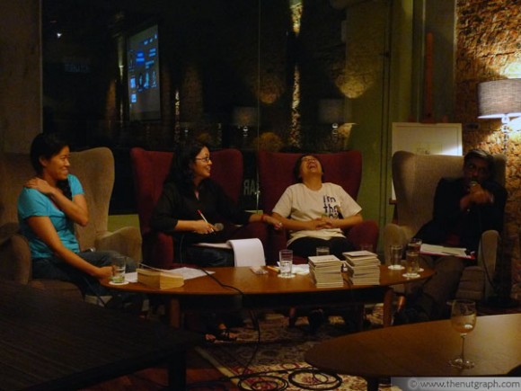 (From left) Toh, Surin and Tai amused by McCoy’s joke about environmentalists being bad neighbours but good ancestors. October 2, 2010