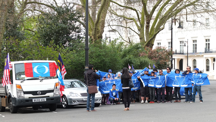 Three minivans parked across the street from the High Commission bore Barisan Nasional flags, while a lorry carried the PKR flag. (Pic by Hwa Yue-Yi) April 30, 2013