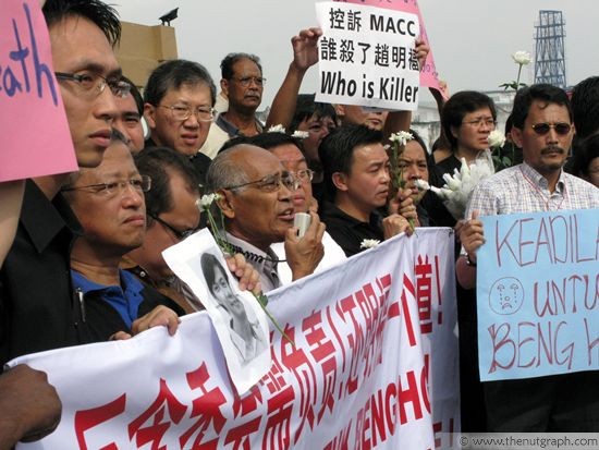 “The government says that people should not blame the MACC for [Teoh’s] death until the investigation is over, but we say that until they can prove who killed Beng Hock, the MACC should be held responsible for his death,” Lim told reporters later.