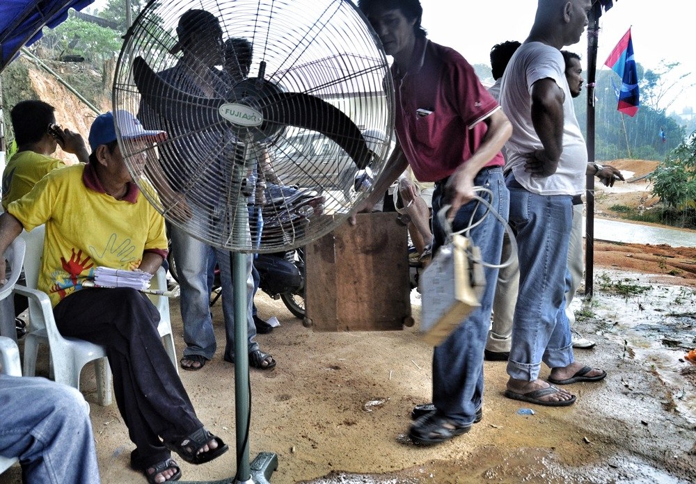 In a little earthern nook carved into a slope, PKR has set up a tent for their base of operations at Felda Hutan Percha. April 29, 2013